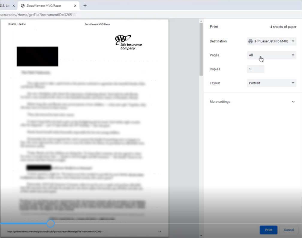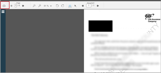 To print a copy of a document opened in the Document Viewer, click the printer icon in the toolbar.