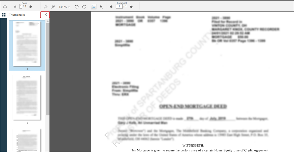 You can open the document viewer by clicking on the View Image icon in the search results or by clicking the View Image button on the preview or browser window tab view of the index information.