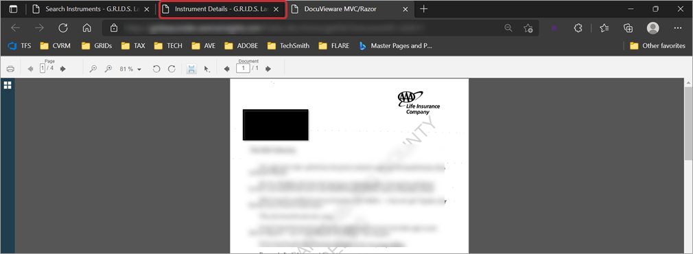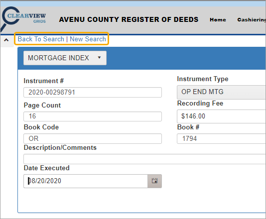 You can simply click the “Instrument Details - GRIDS” tab to return to the index information and leave the viewer available to view another document quickly.