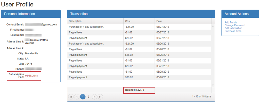 Check your Subscription End date in the Personal Information block. This date shows how long you have access before needing to purchase more time.