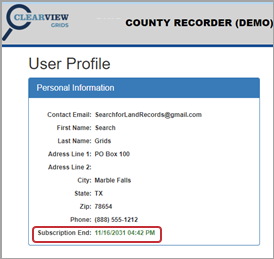 You will need to purchase time when searching records in counties with subscription-based search. When you signed up to create your GRIDS account, you were required to purchase your first search session fee. Additional search access requires additional funding via PayPal to add money into your GRIDS account. Copy requests and print outs are also paid for from these funds.