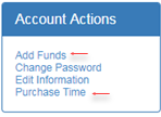 Using Account Actions to Add Funds or Purchase Time